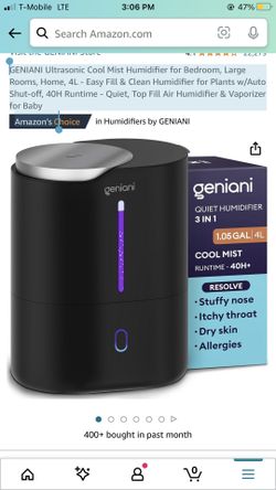 GENIANI Ultrasonic Cool Mist Humidifier for Bedroom, Large Rooms, Home, 4L - Easy Fill & Clean Humidifier for Plants w/Auto Shut-off, 40H Runtime - Qu$20Miami Gardens, FL