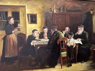 Large Painting Judaic Picture 53” X 41” Rabbi Teaching Student in Parkland $125Pompano Beach, FL