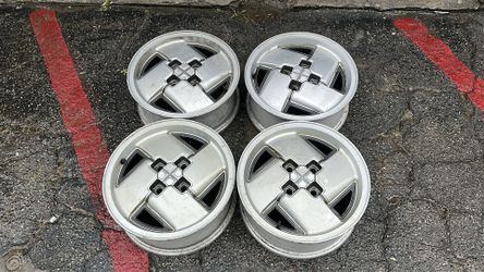 Ford EXP or Mercury Lynx 15-inch aluminum rims and caps 4x108mm fits fox body mustang $500Montebello, CA