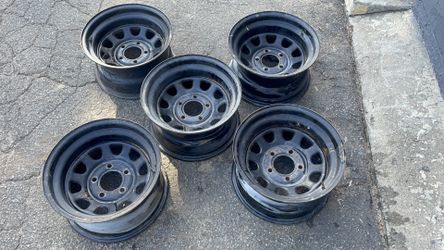 Five matching D-hole style 15x8 inch black steel wheels for a Chevy or GMC truck$300Temple City, CA