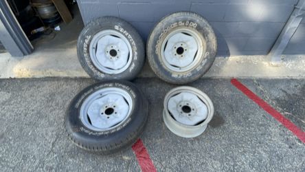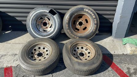 Steel 15x10 wagon wheel style 6 lug rims with old tires fits Chevy, Toyota, Nissan, and more$200Montebello, CA