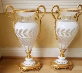 Hand cut Crystal Set Of 2 Vases Tall :19”$750Westlake Village, CA