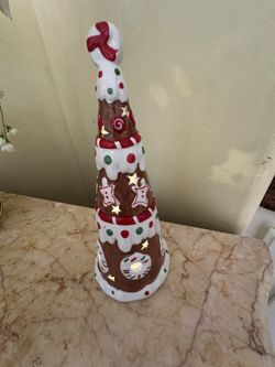 Gingerbread Peppermint LIGHT UP Donut CHRISTMAS TREE Figurine 10" $30Westlake Village, CA