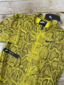 Nike Womens Bodysuit S Yellow Snakeskin Print Mock Neck 1/4 Zip Top CJ6355-735$50Riverside, CA