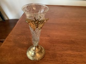 Brass And Crackle Glass Butterfly Vase 7” Tall 3” Wide $15Kernersville, NC