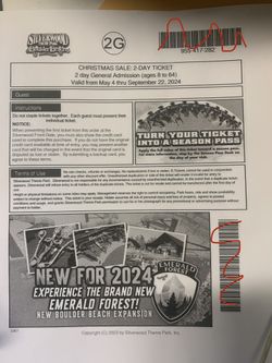 Five Silverwood Tickets$375Burlington, WA