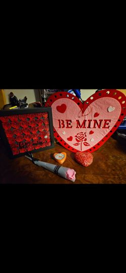 The one u love. Valentine's lot. Frame (glass) mini roses, mini pink rose, 2 candles & cloth heart sign, firm.$20Zion, IL