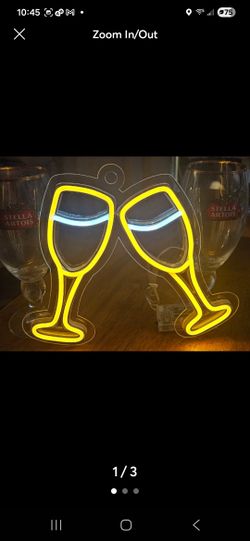 VALENTINE'S: New, Neon Light 2 drink sign *battery operated* & 2 new Stella Artois glasse w/gold rim edge. firm$30Zion, IL