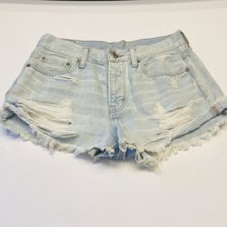 American Eagle Tomgirl Shortie Denim Blue Jean Raw Hem Distressed Shorts Size 6$25Alafaya, FL