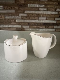 LIKE NEW PIER 1 WHITE WITH SILVER TRIM SUGAR AND CREAMER SET$10Dearborn, MI
