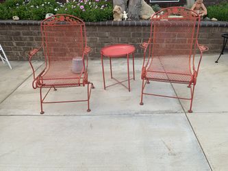 Mid Century Modern Woodard Chantilly Rose wrought iron patio arm chairs. $250Corona, CA