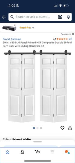 Cal home 60 in. x 80 in. 6 Panel Primed MDF Composite Double Bi-Fold Barn Door with Sliding Hardware Kit$150Westminster, CA