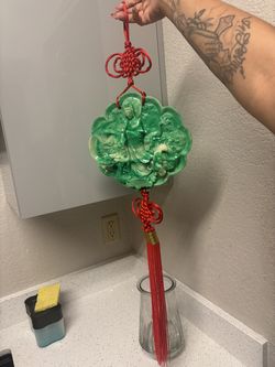 Chinese Culture Red Knot Goddess & Dragon Resin Green Faux Jade Wall Hanging$25Phoenix, AZ
