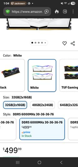 1x TEAMGROUP T-Force Delta RGB DDR5 RAM 16GB$180San Diego, CA