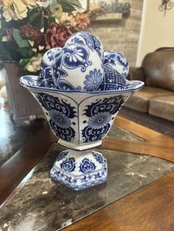 Blue & White Porcelain Chinoiserie Tazza Compote Pedestal Dish$50Houston, TX