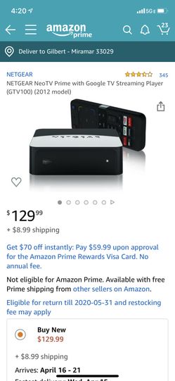 NETGEAR NeoTV Prime with Google TV Streaming Player (GTV100)$120FL, US