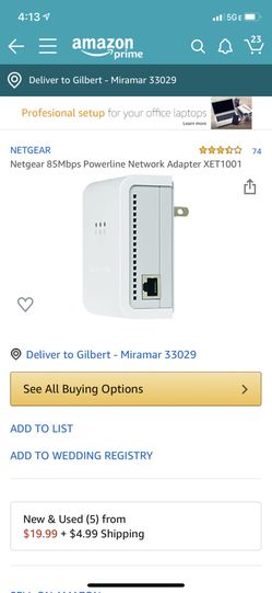 Netgear 85Mbps Powerline Network Adapter XET1001$15Miramar, FL