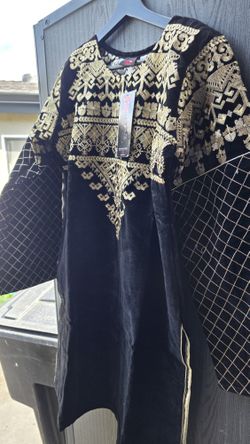 Long Black Dress With Gold Sequence Embroidery $16Torrance, CA