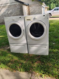 WHITE FRONT LOAD WASHER AND DRYER SET WITH PEDESTAL .$500Houston, TX