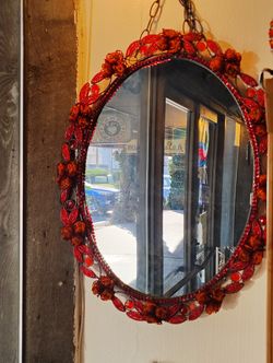 Oval Mirror _ frame with beads ( NEW ) Red With Some Orange $45Salt Lake City, UT