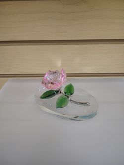 Crystal Glass Rose on glass oval base figurine ( NEW )pink_green. Gift, Souvenir, Valentine$20Salt Lake City, UT