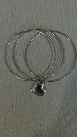 925 Silver Tiffany & Co. Trio Bangle Bracelet With Tilted Heart Charm$180Fort Lauderdale, FL