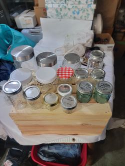 16 Glass Jars And A Wooden Box$10Tacoma, WA