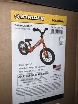 Brand New Strider Bike Balance For Kids 14x 14" Sport Balance Bike - Tangerine SK-SB1-US-TG$140Fontana, CA