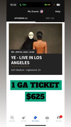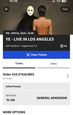 General Admission Kanye West Ticket April 3$625Baldwin Hills, CA