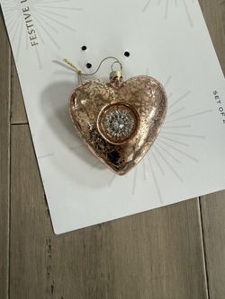 Rose Gold mercury glass heart-shaped Christmas ornament with a jeweled center$60El Cajon, CA