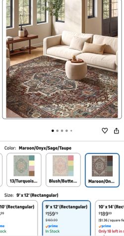 Kokia 9x12 Washable Area Rugs Maroon with Vintage Orient Design, Soft Rug for Living Room or Bedroom, Non-Slip Low Pile Stain Resistance Features, Dis$119Charlotte, NC