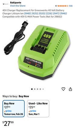 Bakipante 40V Charger Replacement for Greenworks 40 Volt Battery Charger Lithium lon 292 202 292 Compatible with 40V G-MAX Pow$15Charlotte, NC