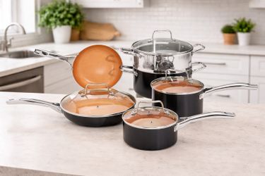 Ceramic Nonstick Cookware Set, Induction Ready, Dishwasher & Oven Safe, Even Heating, 10-Piece Set with Frying Pans, Saucepans, Glass Lids, Copper Col$75Charlotte, NC
