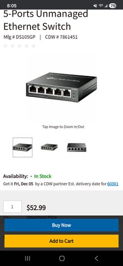TP-Link Omada DS105GP 5-Ports Unmanaged Ethernet Switch$40Franklin Park, IL