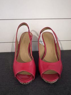 NINE WEST Hot Pink/Reddy Patent Leather Open Toe Buckle Slingback Heels Shoes Size 7$80Peoria, AZ