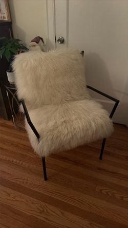Modern White Sheepskin Fur Iron Accent Statement Boutique Chair DISCONTINUED $300Lincolnwood, IL