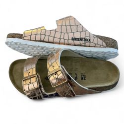 Birkenstock Gold and Tan Sandals with Croc Texture$125Cypress, CA