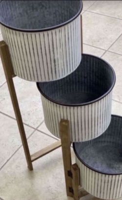 Brand new metal, new in box wood 3 tier plant stand! Width of pot 11 inches and height of pot is 8 inches $65 or Best offer$65Burbank, IL