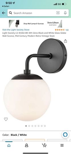 Black and White Glass Globe Wall Sconce, Mid Century Modern Retro Vintage Style$50Buckeye, AZ