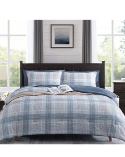 New Plaid Queen Comforter Sets, Light Blue Grid Farmhouse Bedding Set Bed in A Bag, Classic Checkered Comforter Sets with Fitted & Flat Sheet, Pillowc$50Los Angeles, CA