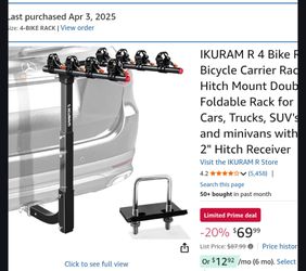 IKURAM 4 Bike Rack Bicycle Carrier Rack w/3 Bike Crossbar Adapters$125Los Angeles, CA