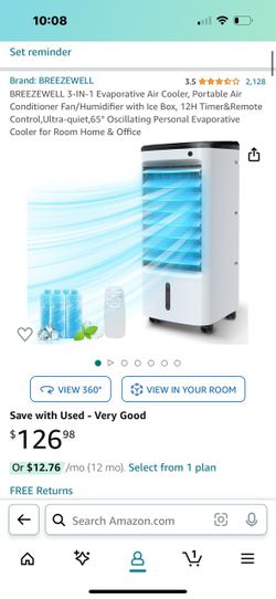 BREEZEWELL 3-IN-1 Evaporative Air Cooler, Portable Air Conditioner Fan/Humidifier with Ice Box, 12H Timer&Remote Control,Ultra-quiet,65° Oscillating P$60Sunnyvale, CA