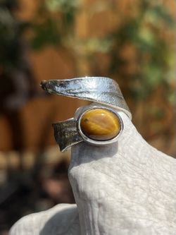 Brand New, Handmade Tiger Eye-Silver ring, adjustable size, organic style π