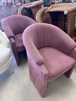 Pair of Pink lounge chairs style of Vladimir Kagan W/ a postmodern, curved design w/ plush upholster$150Fort Lauderdale, FL