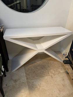contemporary console accent table featuring a white laminate finish and a unique geometric X-shaped$125Fort Lauderdale, FL
