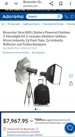 Broncolor Siros 800 L Battery-Powered 2-Light Outdoor Kit 2 Photography Lights Professional $4,500Medley, FL