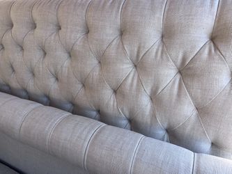 Restoration Hardware Sand Beige Upholstered Chesterfield Fabric Sleigh Bed (Cal King Bed Frame)$500Hilltop Mall, CA