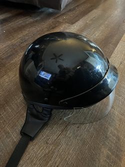 preowned glossy black half-shell motorcycle helmet with a drop-down sun visor$20Dunn, NC