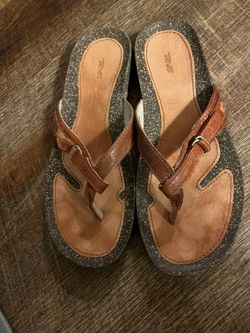 New pair of Teva Ventura brown leather flip-flop wedge sandal $20Dunn, NC