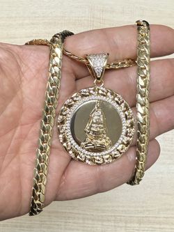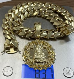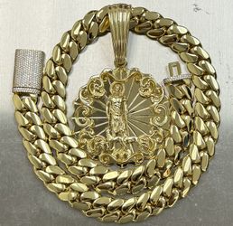 Super Heavy Flat Miami Cuban Links Necklace And Large Saint Lázaro Pendant $650Fort Lauderdale, FL